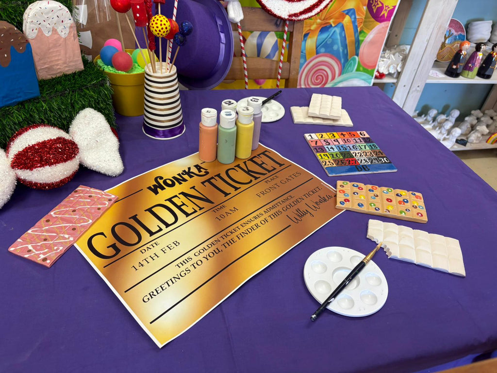 But the enchantment doesn't end there! Unleash your creativity as you paint your very own clay Wonka bar and lollipop, creating magical souvenirs that will last a lifetime.